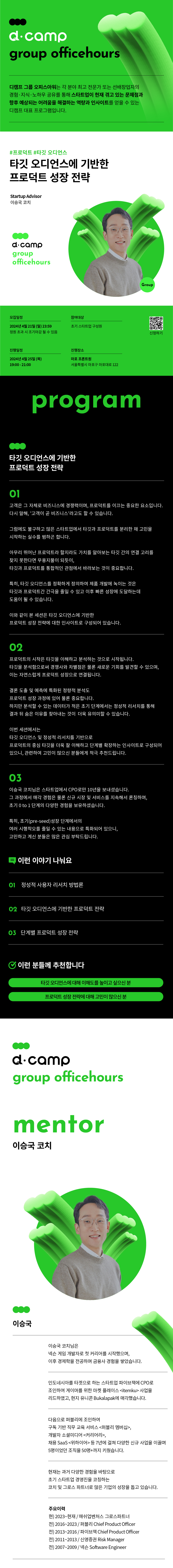 [4/25 (목)│마포] d·camp officehours (group) : 타깃 오디언스에 기반한 프로덕트 성장 전략
